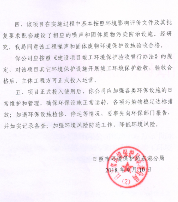 關(guān)于日照廣大裝飾工程有限公司年產(chǎn)100 萬(wàn) m2 防水卷材項(xiàng)目噪聲和固體廢物污染防治設(shè)施竣工環(huán)境保護(hù)驗(yàn)收的批復(fù)